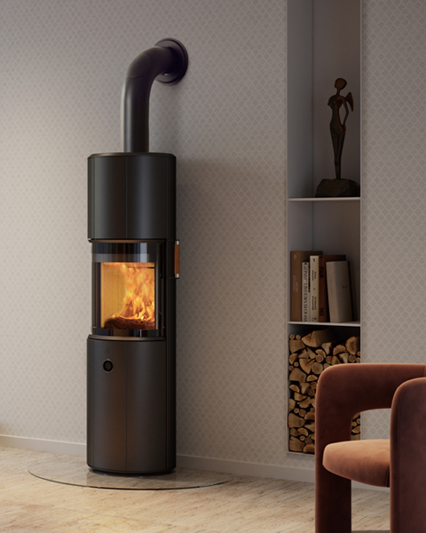 持続性、シンプルさ、機能性を兼ね備えるデンマークのデザイン。その魅力をいかんなく発揮したSCAN 67は、湾曲したパノラマガラスと、ラウンド型のフォルムが特徴です。背面は壁と平行になるDシルエットなので、省スペースでの設置が可能。そして、少しの力で静かに閉まるソフトクローズドアを搭載しています。さらに、スキャンはサステナブルであることに重点を置いているため、環境への影響を最小限に抑え、薪のエネルギーを最大限に活用できるZensoric(センソリック)を開発しました。燃焼の状態に応じて、3経路ある燃焼用空気を自動で制御。薪が不足したときにはランプで知らせるなど、燃焼効率を最大限に高めて環境に配慮した燃焼を自動で行います。また、“My SCAN”で豊富なオプションから自分だけのモデルにカスタマイズすることもできます。
