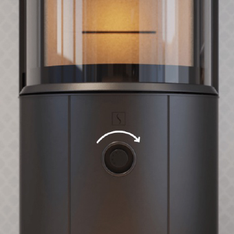 Zensoric(センソリック)による空気制御は自動で行われますが、好みに応じて空気調節ノブで手動調整することも可能です。空気調節ノブは扉の下に設置されており、火加減を微調整して快適な暖房を実現できます。ノブは5段階の調節機能を備えており、炎の大きさや暖かさを好みに合わせて簡単にお調整いただけます。Zensoric(センソリック)は常に最適な燃焼状態を維持するように空気の流れを調整します。